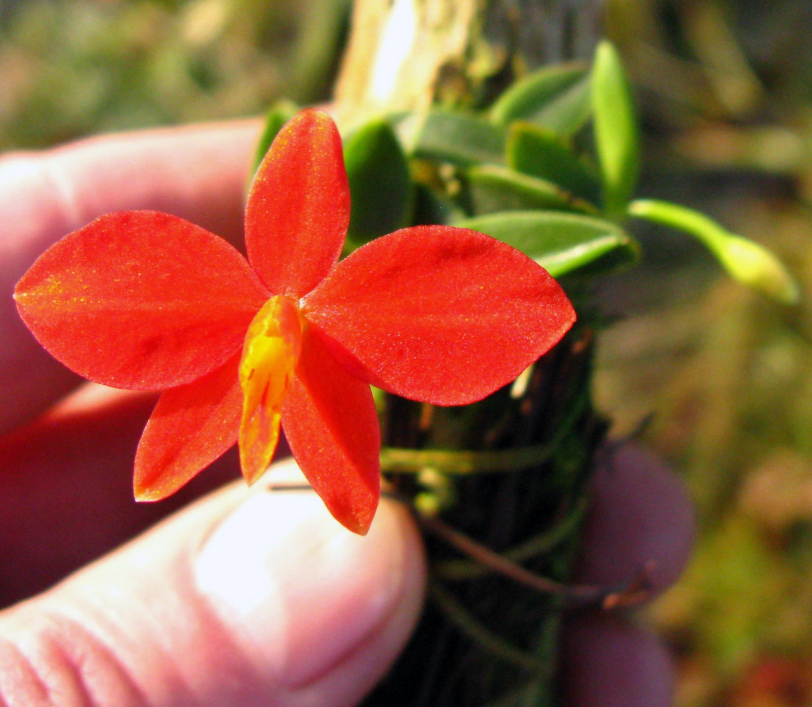 Mediocalcar bifolium ist eine niedrig wachsende, kriechende Miniatur-Orchidee aus den nebelreichen Bergwäldern Neuguineas. Charakteristisch sind …
